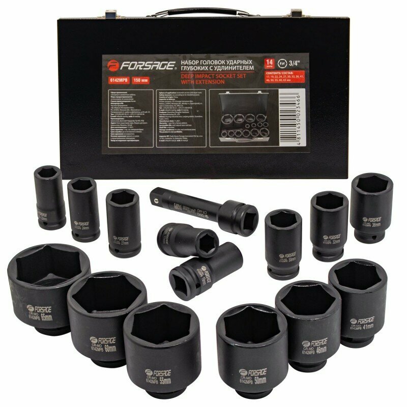 Купить Набор головок ударных глубоких 3/4″DR, 14 предметов (17-65мм) в кейсе Forsage F-6142MPB с доставкой по всей России. Набор головок ударных глубоких 3/4″DR, 14 предметов (17-65мм) в кейсе Forsage F-6142MPB: сравнение цен, характеристики, фото, актуальное наличие и цены.