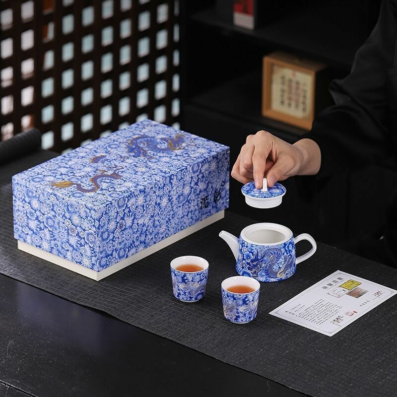 Купить Набор «Голубой дракон» 2 пиалы и чайник в подарочной коробке для чайной церемонии. Деловой подарок, новогодний презент с доставкой по всей России.