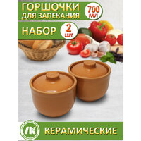 Купить Набор горшков Ломоносовская Керамика «Ломоносовский», жаропрочные, 0,7 л, 2 шт, терракотовые с доставкой по всей России.