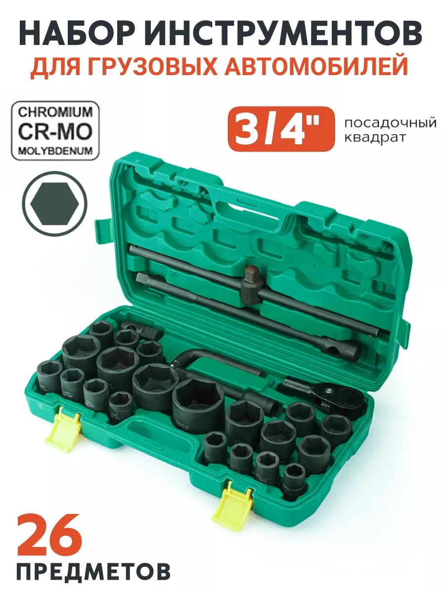 Купить Набор грузовых головок 3/4″ 6-гранный 26 предметов в прочном кейсе с доставкой по всей России. Набор грузовых головок 3/4″ 6-гранный 26 предметов в прочном кейсе: сравнение цен, характеристики, фото, актуальное наличие и цены.