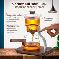 Колба для заваривания, чахай (чаша), крышка, установка с подносиком и магнитным переключателем для слива вниз, подарочная коробка