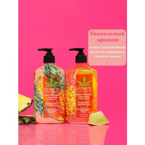 Набор Hempz шампунь и кондиционер Ананас и Медовая Дыня для объёма волос Sweet Pineapple & Honey Melon Herbal Shampoo & Conditioner with Vegan Biotin & Vitamin C, 2 ед. по 500 мл: сравнение цен, характеристики, фото, актуальное наличие и цены.