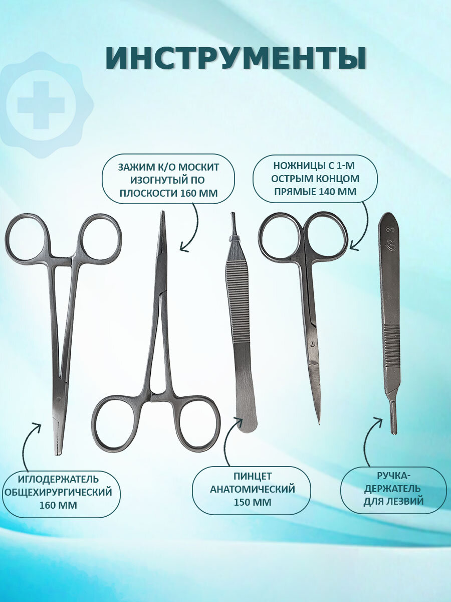 Набор хирургических инструментов для наложения швов, хирургический тренажер: сравнение цен, характеристики, фото, актуальное наличие и цены.