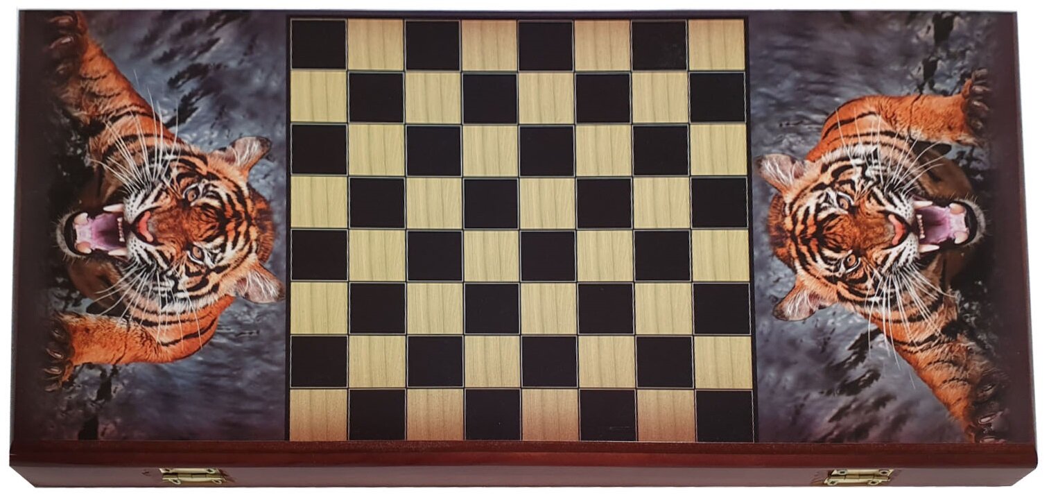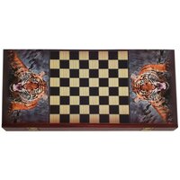 Изделие выполнено в стильном дизайне с изображением тигра, что придаёт ему особую привлекательность и оригинальность. Игровая поверхность обладает высокой прочностью, что обеспечивает долговечность и защиту от износа при частом использовании. Благодаря комфортному размеру, нарды легко разместятся на любом столе и позволят удобно раскладывать фишки.