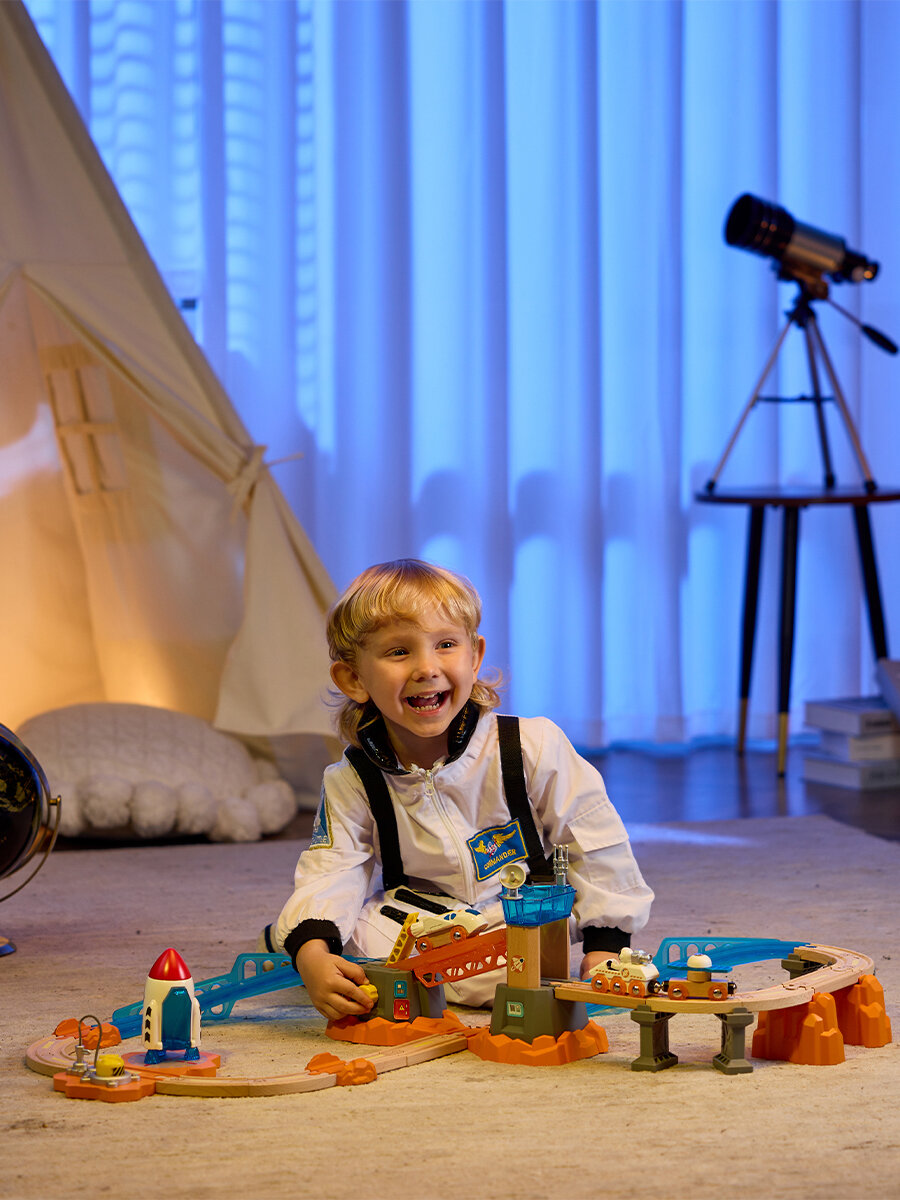 Купить Детская деревянная интерактивная железная дорога Hape «Космос» с поездом и ракетой E3798_HP с доставкой по всей России.