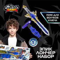 Набор состоит из пусковой установки меча Эпик Лончер Делюкс, съемных ножен, светящегося металлического волчка, креплений на пояс, инструкции, 3 батареек LR41/AG3 (напряжение 1,5V
