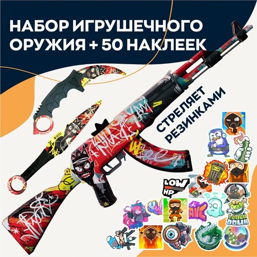 Набор игрушечного оружия и наклеек Tag King/Автомат АК47, керамбит, кунай, наклейки: сравнение цен, характеристики, фото, актуальное наличие и цены.