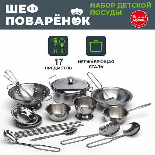 Купить Набор игрушечной посуды 17 предметов. Нержавейка. «Шеф поварёнок» с доставкой по всей России.