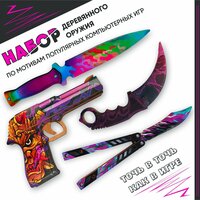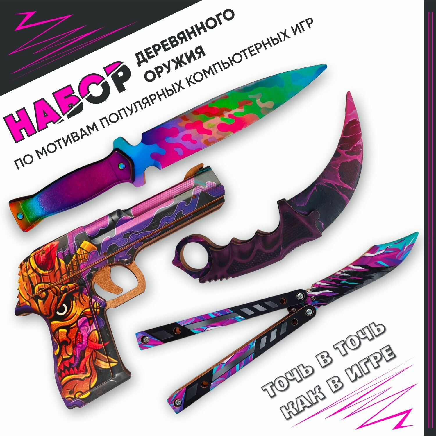 Купить Набор игрушечных ножей PlayOffline «Пистолет резинкострел», «Керамбит нож», «Стинг нож», «Нож бабочка», деревянные, для подвижных игр с доставкой по всей России. Набор игрушечных ножей PlayOffline «Пистолет резинкострел», «Керамбит нож», «Стинг нож», «Нож бабочка», деревянные, для подвижных игр: сравнение цен, характеристики, фото, актуальное наличие и цены.