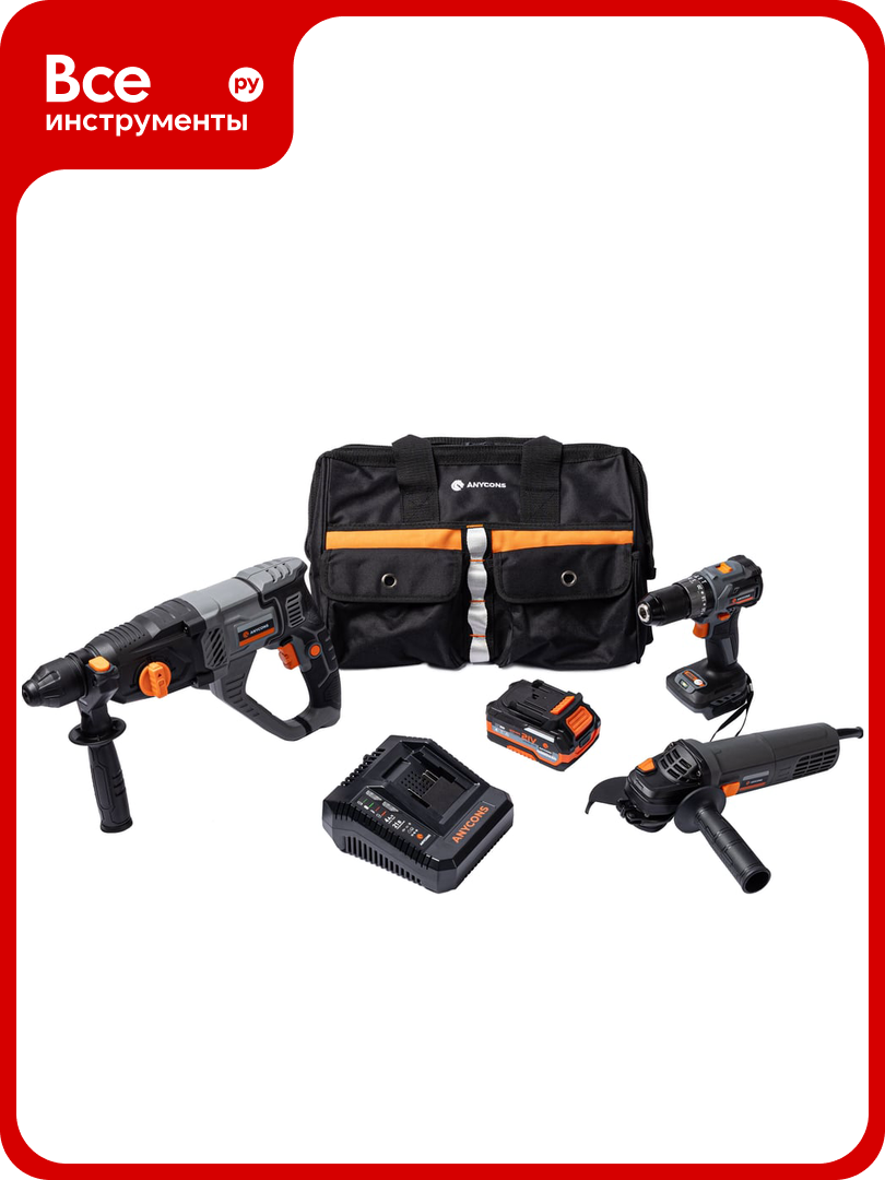 Набор их 3 инструментов Anycons ( УШМ сетевая 125, сетевой перфоратор, шуруповерт) AC-CST705: сравнение цен, характеристики, фото, актуальное наличие и цены.
