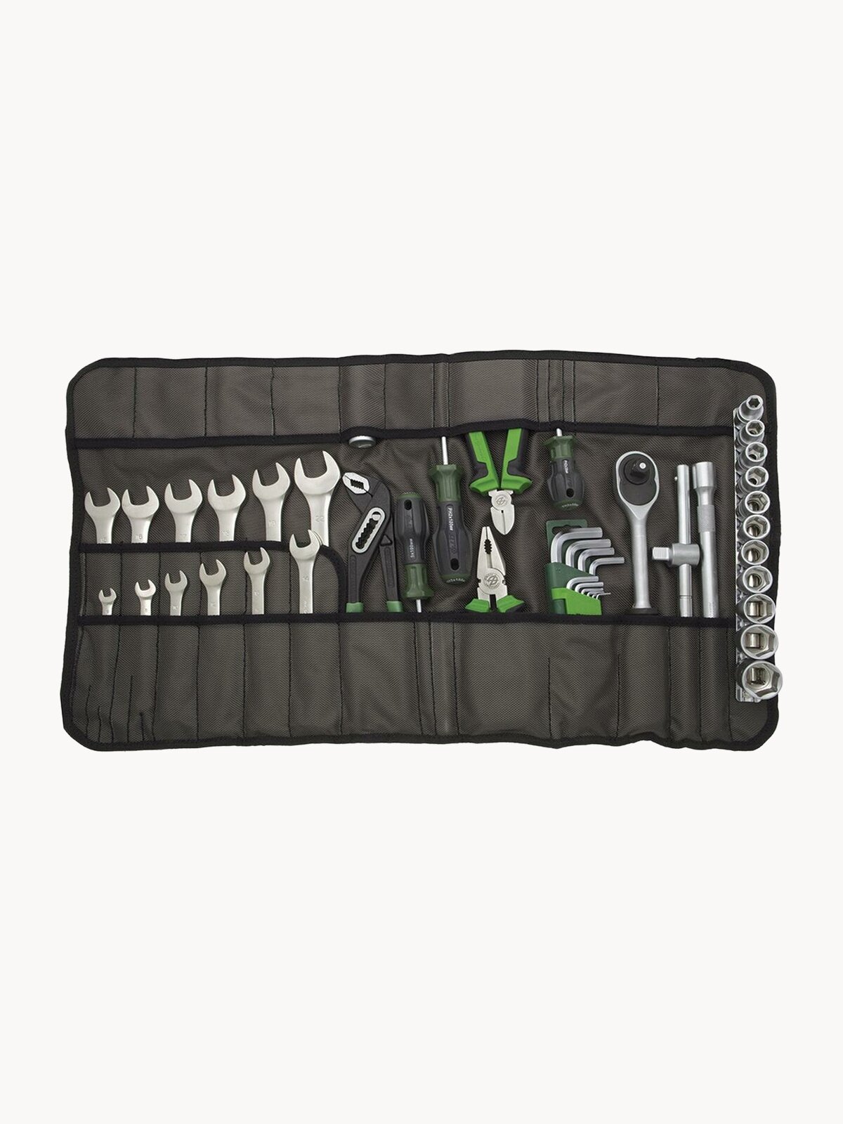 Компактный, универсальный набор инструмента, выполненный в виде сумки-скрутки из масло-водоотталкивающей ткани Oxford. Сделано в России.