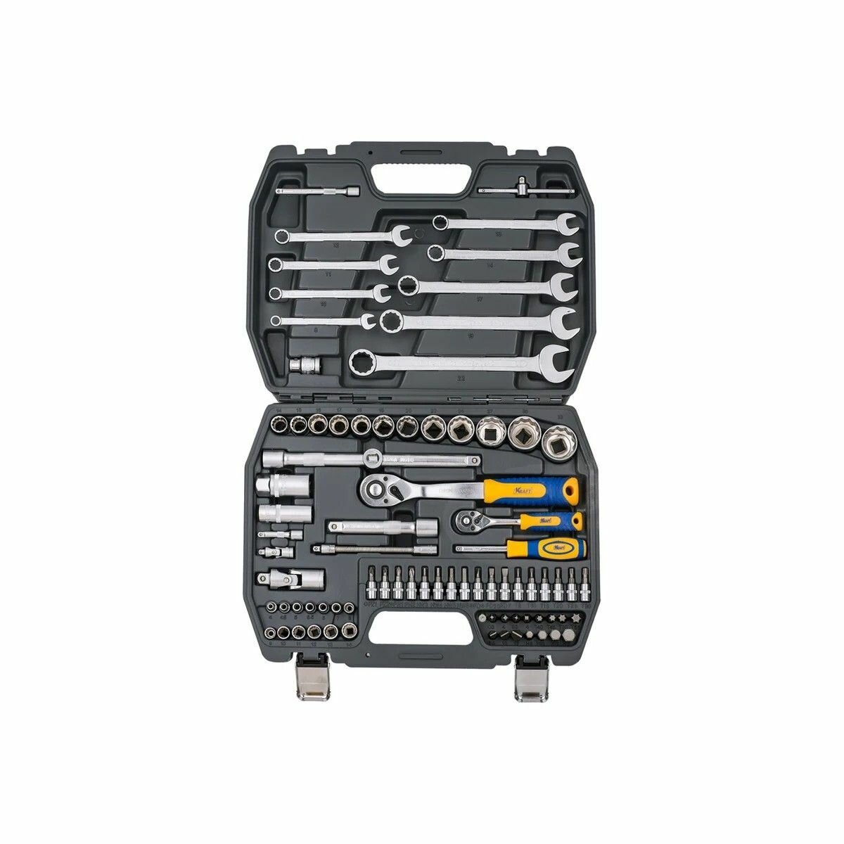 Купить Набор инструмента 82 1/4″-1/2″ пр. пласт. кейс 12 гр. головки Kraft с доставкой по всей России. Набор инструмента 82 1/4″-1/2″ пр. пласт. кейс 12 гр. головки Kraft: сравнение цен, характеристики, фото, актуальное наличие и цены.