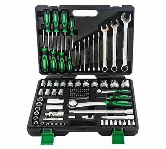 | Подробная комплектация | Торцевая головка 1/4": 4, 4.5, 5, 5.5, 6, 7, 8, 9 мм Торцевая головка 1/2": 10, 11, 12, 13, 14, 15, 16, 17, 18, 19, 22, 24, 27, 30, 32 мм Торцевая головка звездочка 1/4": Е4, Е5, Е6, Е7, Е8 Торцевая головка звездочка 1/2": Е10, Е12, Е14, Е16, Е18, Е20, Е22 Сцепка 1/4" Удлинитель 1/4" Вороток-отвертка 1/4" Изогнутая трещотка 1/4’’ и 1/2’’ Головки свечные 1/2": 16 мм и 21 мм Удлинитель 1/2": 125 мм и 250 мм Универсальный переходник 1/2" Скользящая головка 1/2" Отвертки: Т8, Т10, Т15, Т20, Т25, Т27, Т30, Т40 Комбинированный гаечный ключ: 8, 10, 11, 12, 13, 14, 17, 19, 22 мм Биты 1/4": 30L Пластиковый кейс |