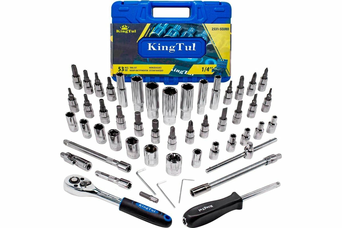 Набор инструмента KingTul 53пр, 1/4, 6-гран, 4-14мм, головки глубокие 6-14мм KT-2531-5 EURO(51110): сравнение цен, характеристики, фото, актуальное наличие и цены.