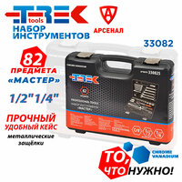 Набор инструментов 82 предмета TREK "Мастер" 1/2" и 1/4" (головки, ключи, биты) прочный удобный кейс