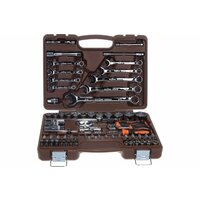 | Аксессуары в комплекте | бита-адаптер для торцевых головок, вороток для плашек, гибкий удлинитель для бит, гибкий удлинитель для головок, головка-держатель для бит, держатель для бит, переходник для головок, удлинитель для бит, удлинитель для головок, шарнир карданный для головок |