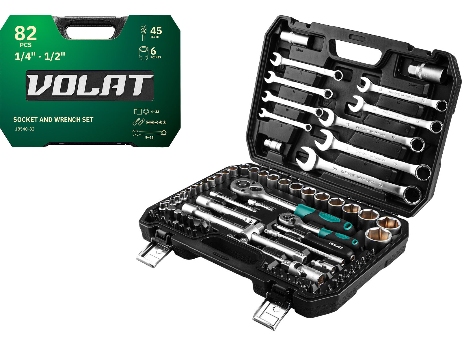 Набор инструментов (набор инструментов ключей комбинированных) это высококачественный набор инструментов (набор головок с трещоткой), который включает в себя 82 предмета.