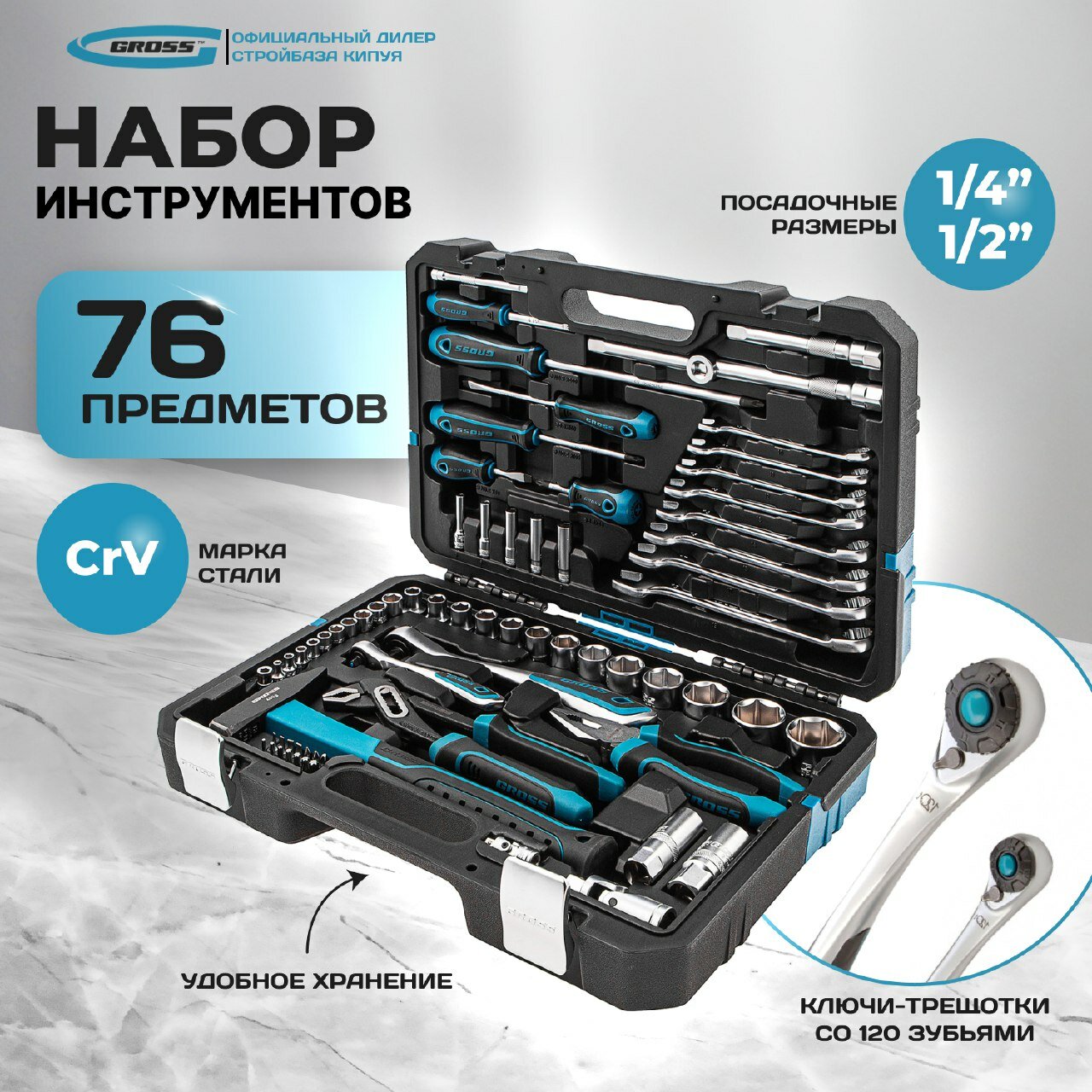 Купить Набор инструментов, 1/4″, 1/2″, CrV, 120 зубьев, 76 предметов Gross 14156 с доставкой по всей России. Набор инструментов, 1/4″, 1/2″, CrV, 120 зубьев, 76 предметов Gross 14156: сравнение цен, характеристики, фото, актуальное наличие и цены.