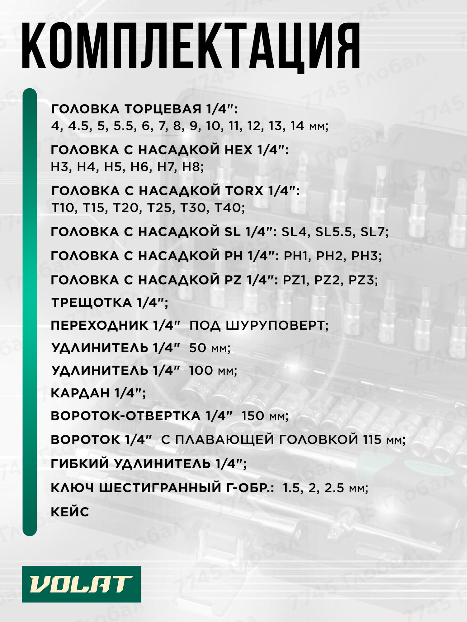 Набор инструментов 1/4″ 6 граней 46 предметов в кейсе волат (18550-46): сравнение цен, характеристики, фото, актуальное наличие и цены.