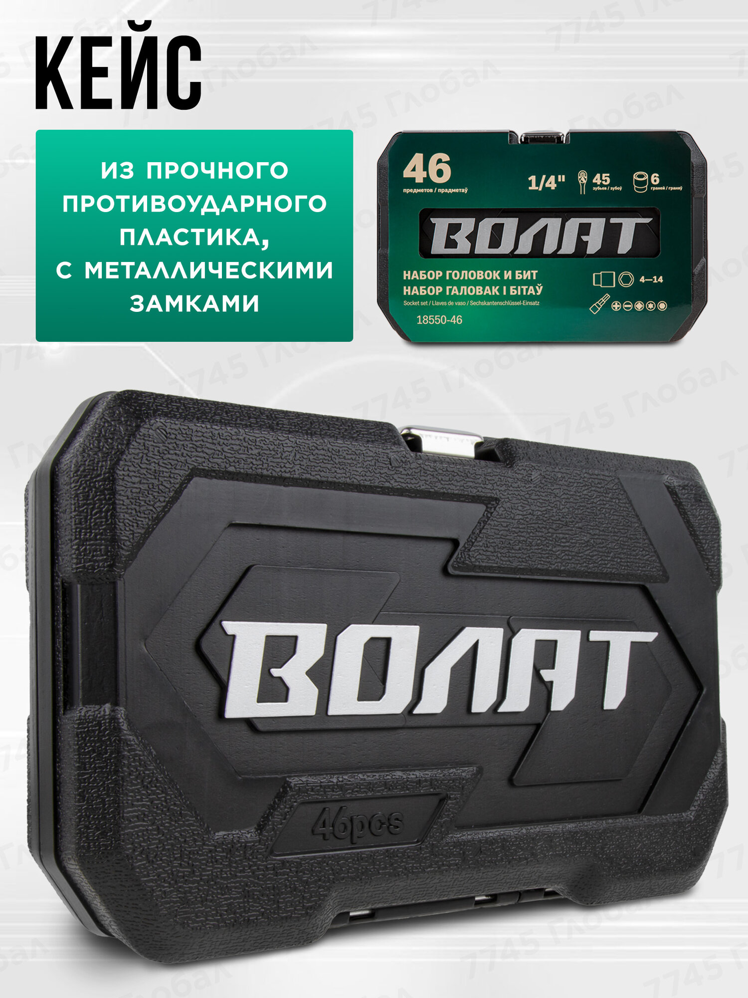 Купить Набор инструментов 1/4″ 6 граней 46 предметов в кейсе волат (18550-46) с доставкой по всей России.