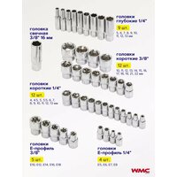 | Головки торцевые подробно | 1/2": 8, 9, 10, 11, 12, 13, 14, 15, 16, 17, 18, 19, 20, 30; свечные 16, 21 мм; 1/4": 4, 4.5, 5.5, 6, 7, 7,5, 8, 9, 10, 11, 12, 13, 14 |