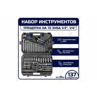 | Дополнительная информация | удлинители-воротки Т-образные 1/2" 250: 5", 10"; гибкий удлинитель 1/4" 125 мм; удлинитель для торцевых головок 1/2" 120 мм; удлинители для торцевых головок 1/4": 50, 100, 150 мм; удлинитель-вороток Т-образный 1/4" 115 мм; карданные шарниры: 1/4", 1/2"; адаптер для торцевых головок 1/2"x1/4"; трещотка: 1/2" 1/4" |