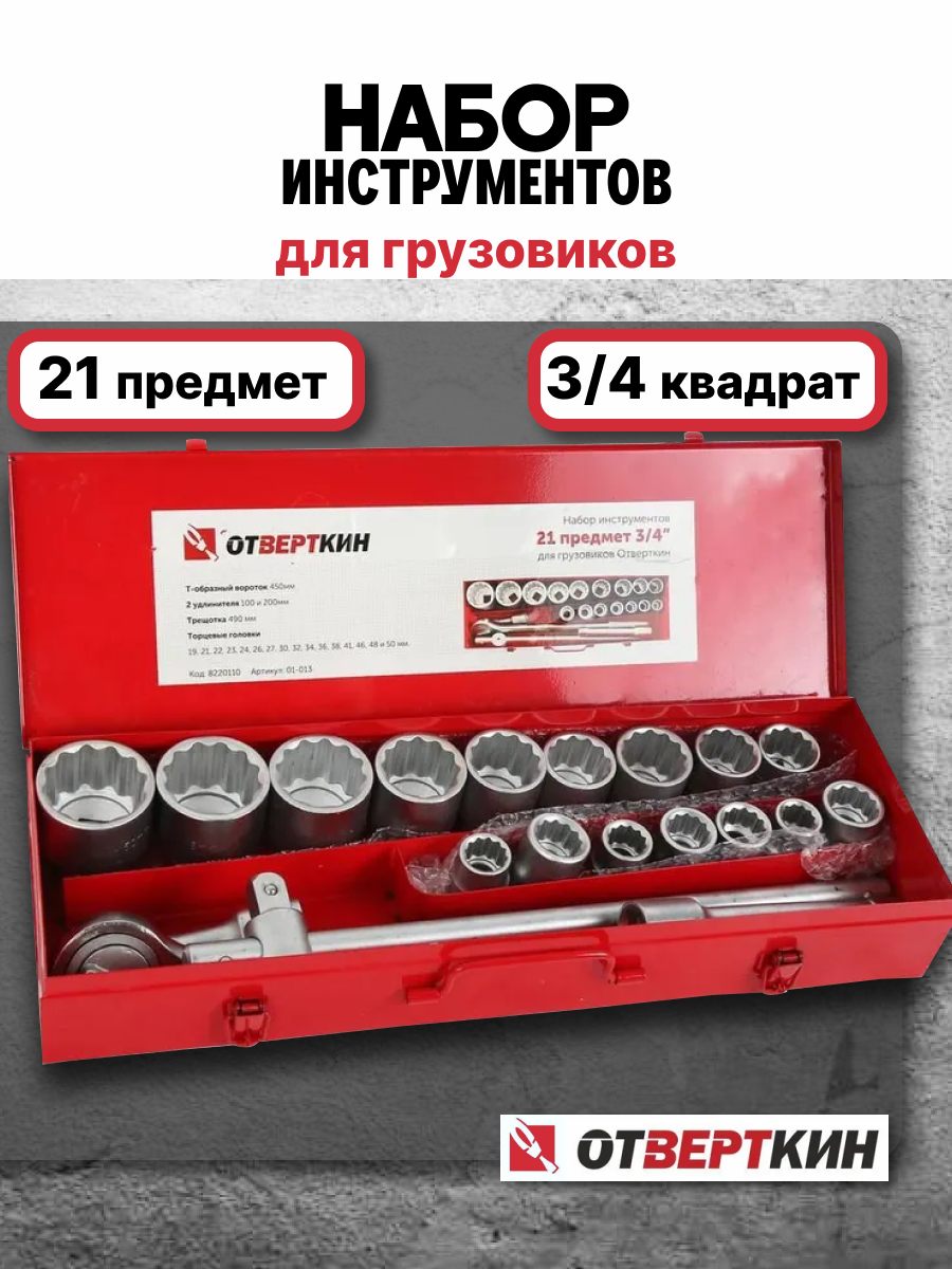Купить Набор инструментов 21 предмет 3/4 для грузовиков Отверткин в кейсе с доставкой по всей России. Набор инструментов 21 предмет 3/4 для грузовиков Отверткин в кейсе: сравнение цен, характеристики, фото, актуальное наличие и цены.