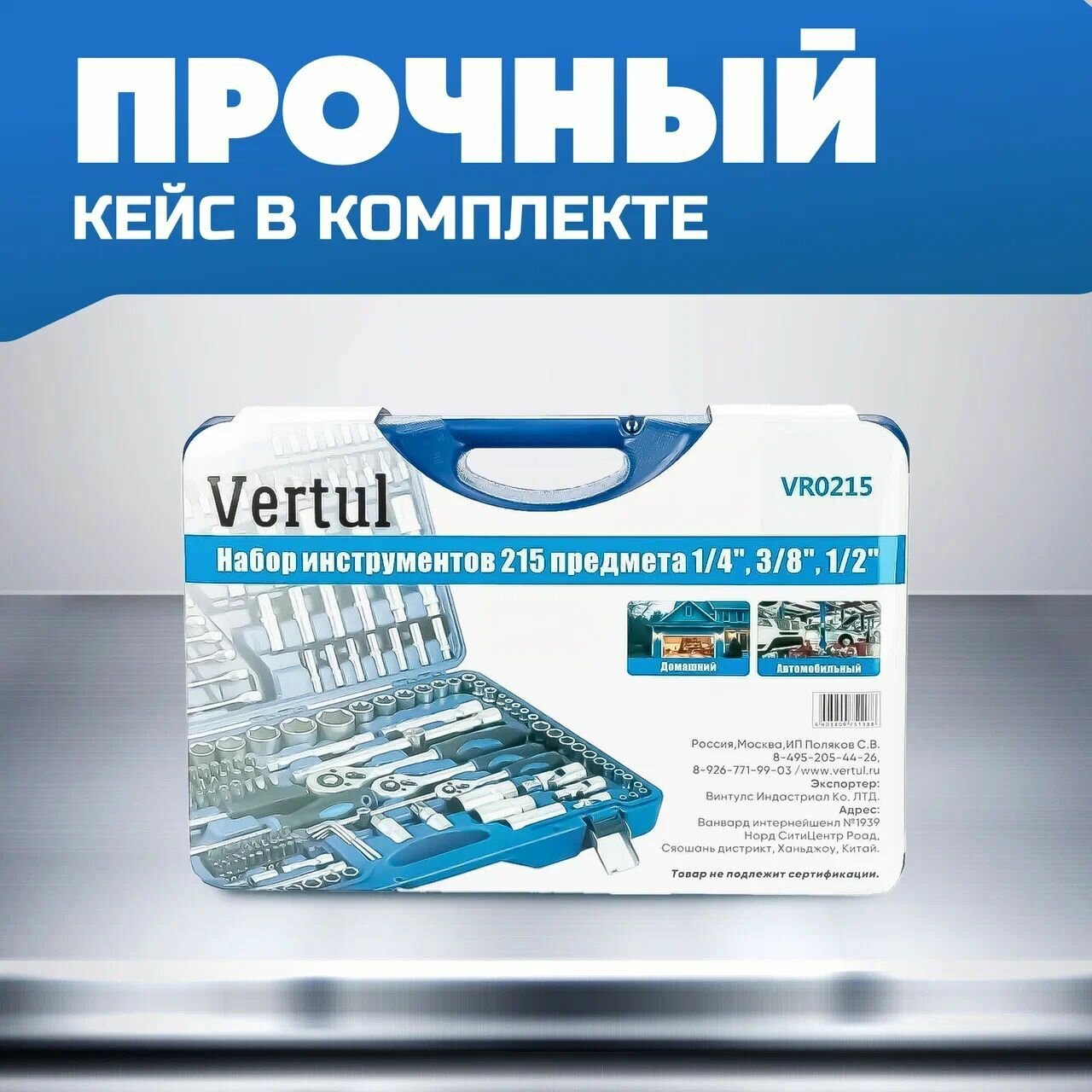 Набор инструментов 215 предметов 1/4", 3/8", 1/2" Vertul VR0215