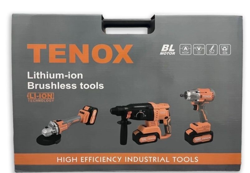Набор инструментов 3 в 1 TENOX АКБ (Болгарка, Гайковерт и Перфоратор): сравнение цен, характеристики, фото, актуальное наличие и цены.