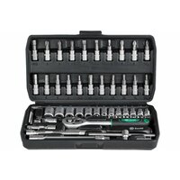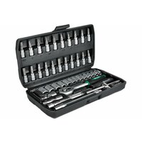| Аксессуары в комплекте | бита-адаптер для торцевых головок, вороток для метчиков, вороток для плашек, гибкий удлинитель для бит, гибкий удлинитель для головок, головка-держатель для бит, держатель для бит, изолента, набор крепежа, нож, ножовочные полотна по металлу, отвертка индикаторная, переходник для головок, рулетка, удлинитель для бит, удлинитель для головок, уровень, шарнир карданный для головок, штангенциркуль |