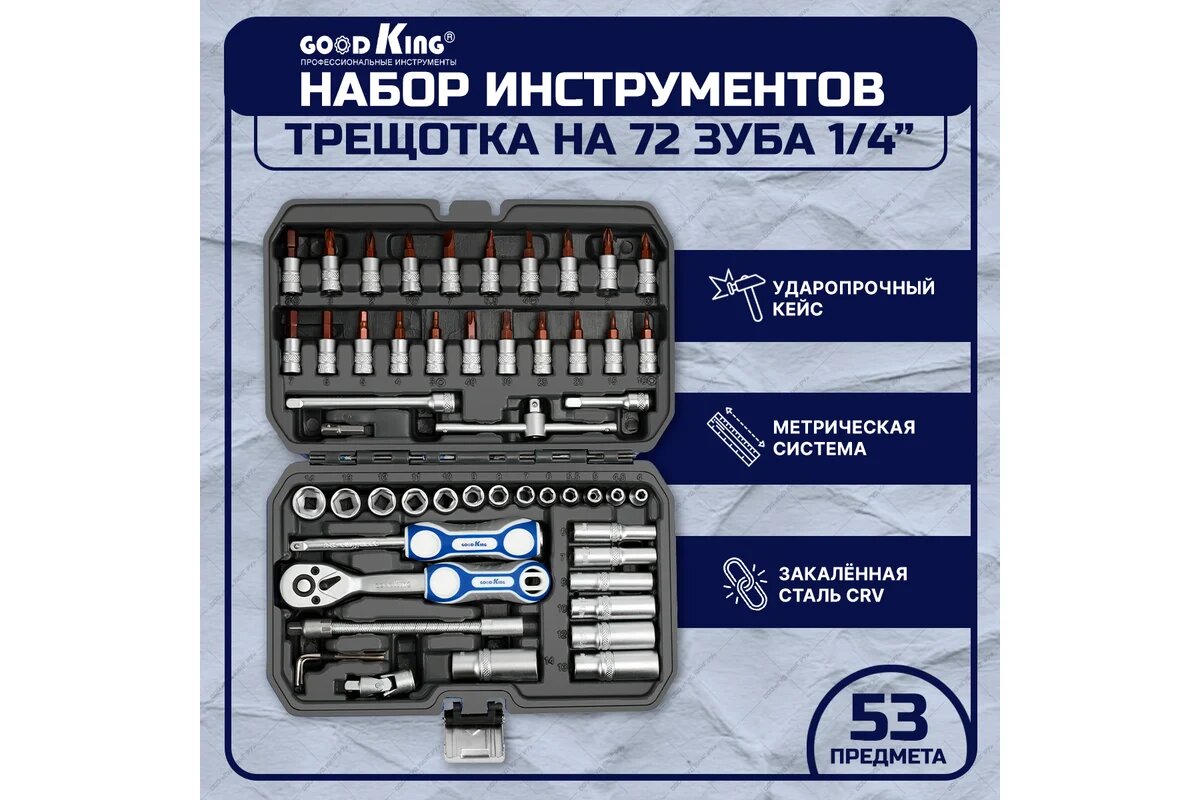 Купить Набор инструментов 53 предмета GOODKING С-10053 в кейсе для хранения с доставкой по всей России. Набор инструментов 53 предмета GOODKING С-10053 в кейсе для хранения: сравнение цен, характеристики, фото, актуальное наличие и цены.