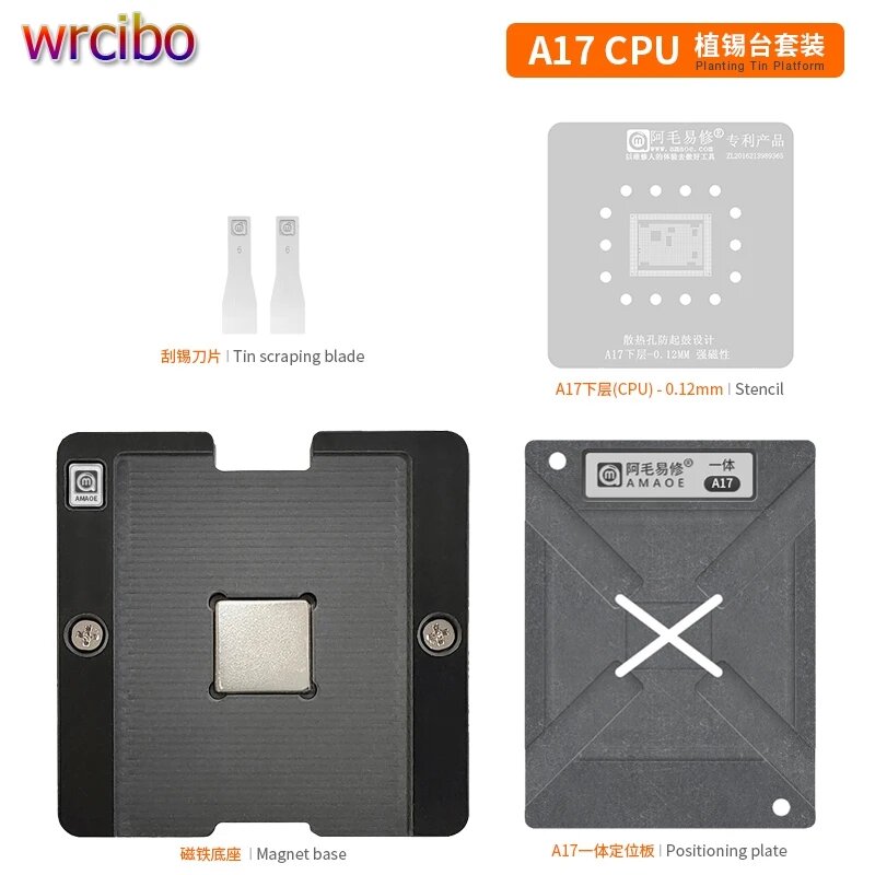 Купить Набор инструментов Amaoe A17 для ремонта процессора, BGA Магнитный трафарет для iPhone 15 Pro MAX, материнская плата, чип IC, оловянный шаблон для пайки, наборы инструментов, Full Set с доставкой по всей России.