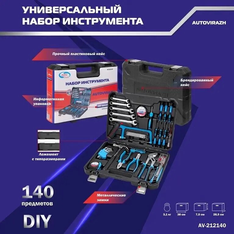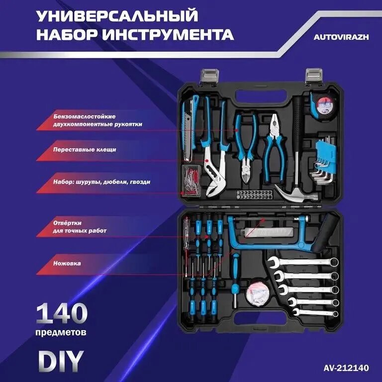 Купить Набор инструментов AUTOVIRAZH AV-212140, 140 предметов с доставкой по всей России. Набор инструментов AUTOVIRAZH AV-212140, 140 предметов: сравнение цен, характеристики, фото, актуальное наличие и цены.