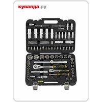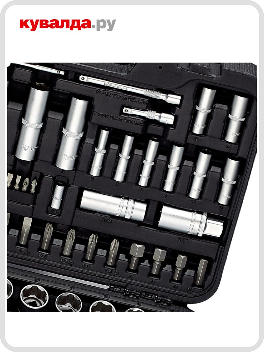 | Головки торцевые подробно | 1/4" (Super Lock): 4, 4.5, 5 ,5.5, 6, 7, 8, 9, 10, 11, 12, 13, 14 мм; длинные 1/4" (Super Lock): 6, 7 8, 9, 10, 11 ,12, 13 мм; удлинитель 1/4": 50, 100 мм; трещотка 1/4": 45 зубов; карданный шарнир 1/4"; вороток т-образный 1/4": 110 мм; 1/2" (Super Lock): 10, 11, 12, 13, 14, 15, 16, 17, 18, 19, 20, 21, 22, 24, 27, 30, 32 мм; длинные 1/2" (Super Lock): 14, 15, 17, 19, 22 мм; свечные 1/2": 16, 21 мм; трещотка 1/2": 45 зубов; удлинитель 1/2": 125, 250 мм |