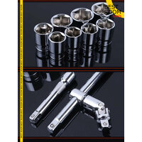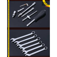 Для дома и авто: этот универсальный набор инструментов идеально подходит для ремонта в доме или в автомобиле, обеспечивая профессиональный результат. Удобный кейс обеспечивает надежное и крепкое хранение всех инструментов. Дополнительно служит для легкости переноски и организации рабочего пространства. Комплектация торцевые головки И принадлежности 1/2" 18 шт. - Головки 6-гранные: 10, 11, 12, 13, 14, 15, 16, 17, 18, 19, 20, 21,22,23, 24,27,30 , 32мм 2 шт. - Головки 6-гранные свечные: 16, 21 мм 2 шт. - Удлинители: 125, 250 мм 1 шт. - Трещотка: 250 мм, 72 зубца 1 шт. - Кардан: 75 мм 1 шт. - Скользящий адаптер: 1/2" x 3/8" торцевые головки И принадлежности 1/4" 13 шт. - Головки 6-гранные: 4, 4.5, 5, 5.5, 6, 7, 8, 9, 10, 11, 12, 13, 14 мм 2 шт. - Удлинители: 50, 100 мм 1 шт. - Удлинитель гибкий: 140 мм 1 шт. - Трещотка: 160 мм, 72 зубца 1 шт. - Вороток Т-образный: 115 мм 1 шт. - Отвертка-вороток: 150 мм 1 шт. - Кардан: 40мм ключи 12 шт. - Ключи комбинированные: 8, 9, 10, 11, 12,13, 14, 15, 16,17, 18, 19 мм 3 шт. - Ключи шестигранные укороченные: 1.5, 2, 2.5 мм
