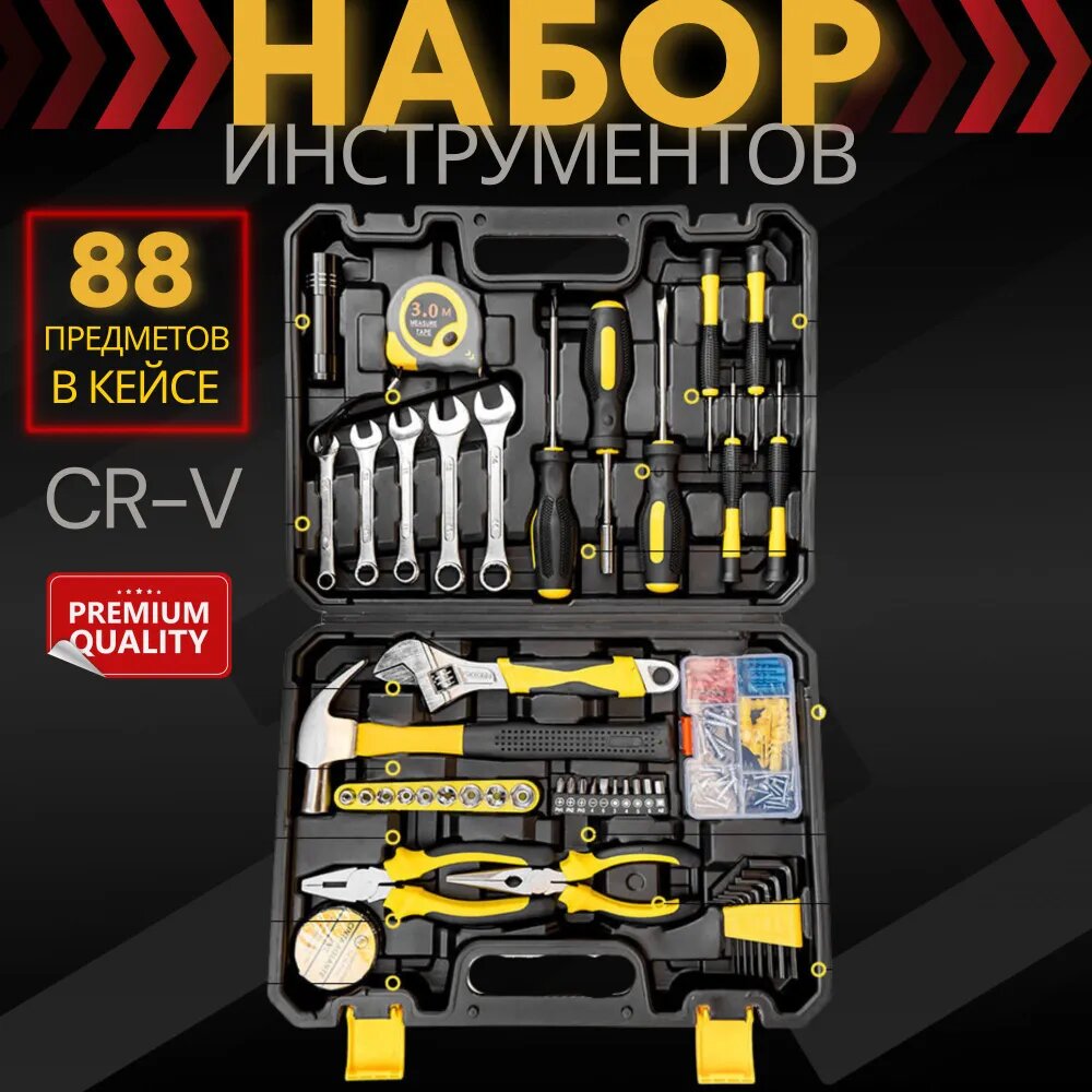 Набор инструментов 88 предметов подходит для использования в различных сферах, включая авторемонт, ремонт дома и строительные работы.