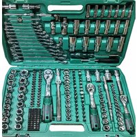 Набор инструментов 216-PCS-CR-V включает в себя 216 предметов, в том числе ключи-трещотки из стали CrV со 120 зубьями и присоединительным размером 1/4", 1/2" и 3/8". Входящие в комплект инструменты используются для монтажа и демонтажа резьбовых соединений. Воротки, удлинители и карданные шарниры облегчают работу в стесненных условиях. Набор пригодится водителям, сотрудникам автосервисов, а также домашним мастерам.