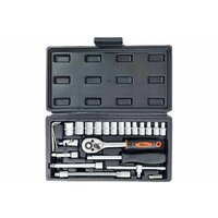 | Головки торцевые подробно | шестигранные 1/4”: 4, 4.5, 5, 5.5, 6, 7, 8, 9, 10, 11, 12, 13, 14 мм - 13 штук; со вставкой 1/4” - 21 штука: hw: 3, 4, 5, 6, 7, 8 мм, sl: 4, 5.5, 7 мм, ph1, ph2, ph3, pz1, pz2, pz3, t10, t15, t20, t25, t30, t40; удлиненные 1/4”: 6, 7, 8, 10, 12, 13, 14 мм - 7 штук |