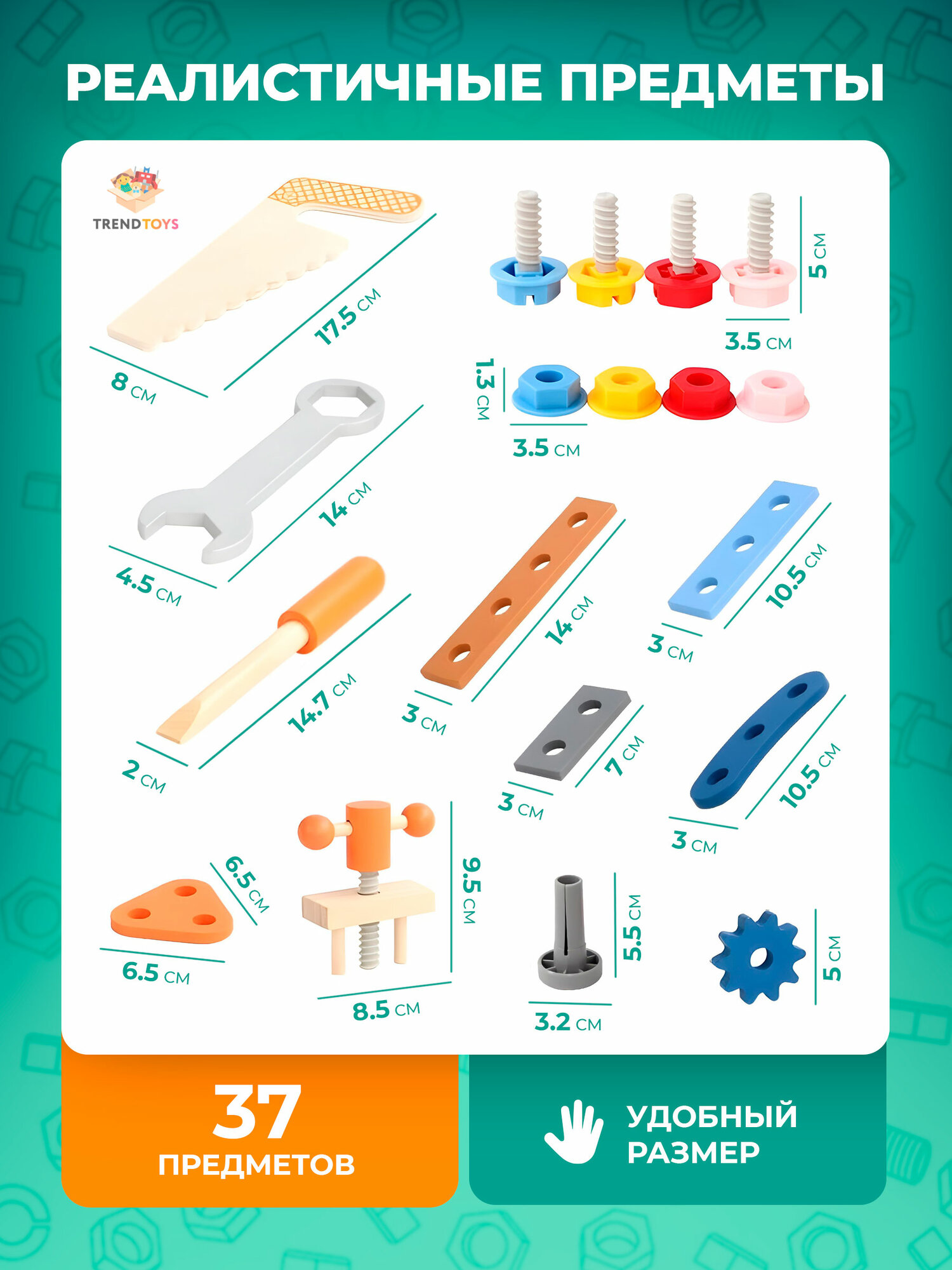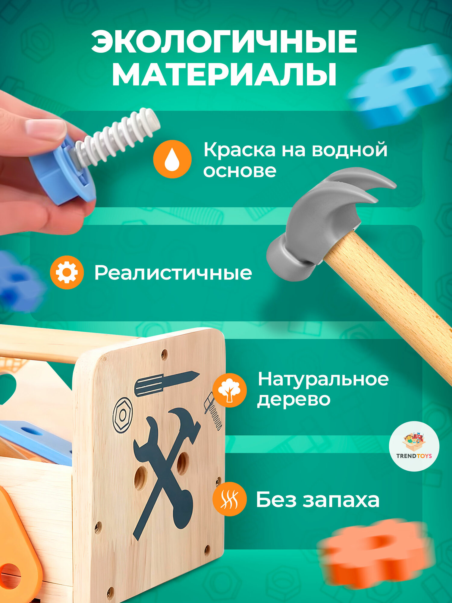 Набор инструментов детский TrendToys деревянный с ящиком, 37 предметов, инструменты для детей: сравнение цен, характеристики, фото, актуальное наличие и цены.