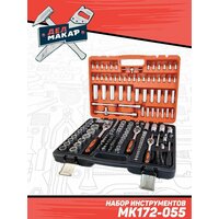 Набор инструментов Дед Макар 172 предмета МК172-055 00-00000199 можно использовать при работе с различными типами крепежа. Для этого в комплекте есть биты и головки различного типа. В качестве вспомогательного снаряжения имеется также несколько карданных шарниров и других компонентов. Это помогает работать со сложным крепежом, а также болтами, которые достаточно заглублены в механизмах.