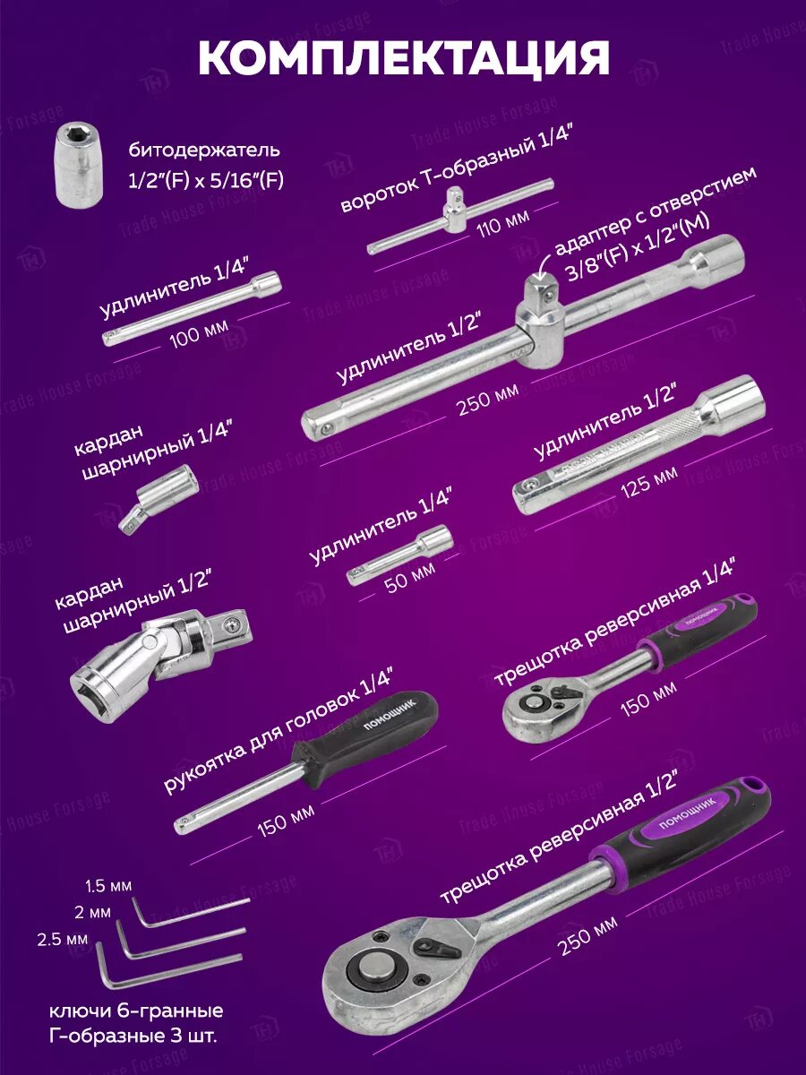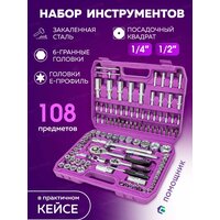 Набор автомобильных инструментов от бренда Помощник - надежный помощник в любой ситуации на дороге. Состоящий из 108 предметов, этот компактный и функциональный набор включает в себя все необходимые инструменты для оперативного ремонта автомобиля.