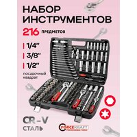 Набор инструментов FK-38841-8 из 216 предметов станет вашим незаменимым помощником для ремонта автомобилей, работы дома или на даче. Уникальный комплект включает в себя головки различных размеров с расположением посадочных квадратов (1/4", 3/8" и 1/2"), а также широкий выбор аксессуаров для выполнения любых задач.