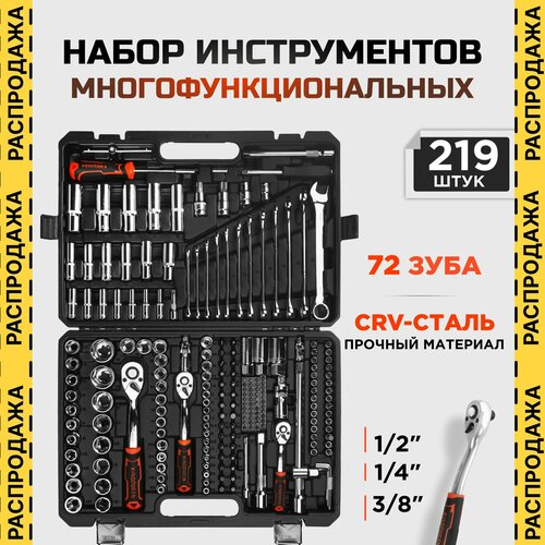 | Дополнительная информация | Ключи комбинированные (12 шт): 8, 9, 10, 11, 12, 13, 14, 15, 16, 17, 18, 19 мм; Ключи накидные с трещоточным механизмом (3 шт): 8 x 10мм, 12 x 13мм, 17 x 19мм; Головки торцевые ½" (17 шт.): 10, 11, 12, 13, 14, 15, 16, 17, 18, 19,20, 21, 22, 24, 27, 30, 32 мм; Головки торцевые ⅜" (10 шт.): 10, 11, 12, 13, 14, 15, 16, 17, 18, 19 мм; Головки торцевые ¼" (13 шт.): 4, 4.5, 5, 5.5, 6, 7, 8, 9, 10, 11, 12, 13, 14 мм; Удлиненные головки ½" (6 шт.): 10, 12, 13, 14, 17, 19 мм; Удлиненные головки ⅜" (6 шт.): 10, 11, 12, 13, 14, 15 мм; Удлиненные головки ¼" (6 шт.): 4, 5, 6, 7, 8, 9 мм; Головки торцевые TORX ½" (3 шт.): E20, E22, E24; Головки торцевые TORX ⅜" (6 шт.): E10, E11, E12, E14, E16, E18; Головки торцевые TORX ¼" (5 шт.): E4, E5, E6, E7, E8; Ударные головки ½" (4 шт.): 17, 19, 21, 23 мм; Головки на свечу зажигания ½" (2 шт.): L=16 мм и L=21 мм; Головки торцевые ⅜" со вставками (20 шт.): PZ1, PZ2, PZ3, PH1, PH2, PH3, FD6.5, FD5.5, FD4, HW6, HW5, HW4, HW3, T20, T30, T40, T45, T50, T55, TX65; Удлинитель ⅜" (2 шт.), L=75 мм и L=150 мм; Удлинитель ¼" (2 шт.), L=100 мм и L=50 мм; Удлинитель ½" (1 шт): L=125; Удлинитель/стержень поворотный со смещаемым торцевым ключом ½", L=250 мм; Стержень поворотный со смещаемым торцевым ключом ¼", L=114 мм; Биты ¼" (9 шт.): T10, T15, T20, T25, T27, T30, T40, PZ1, PZ2; Ключи шестигранные (9 шт.): 1.5, 2, 2.5, 3, 4, 5, 6, 8, 10 мм; Ключ трещоточный реверсивный с быстрым сбросом ½" 24 зубчиков, L=265 мм; Ключ трещоточный реверсивный с быстрым сбросом ⅜" 24 зубчиков, L=150 мм; Ключ трещоточный реверсивный с быстрым сбросом ¼" 24 зубчиков L=150 мм; Отвертка-вороток ¼", L=150 мм; Карданный шарнир ½"; Карданный шарнир ⅜"; Карданный шарнир ¼"; Переходник ¼ шестигранник; |