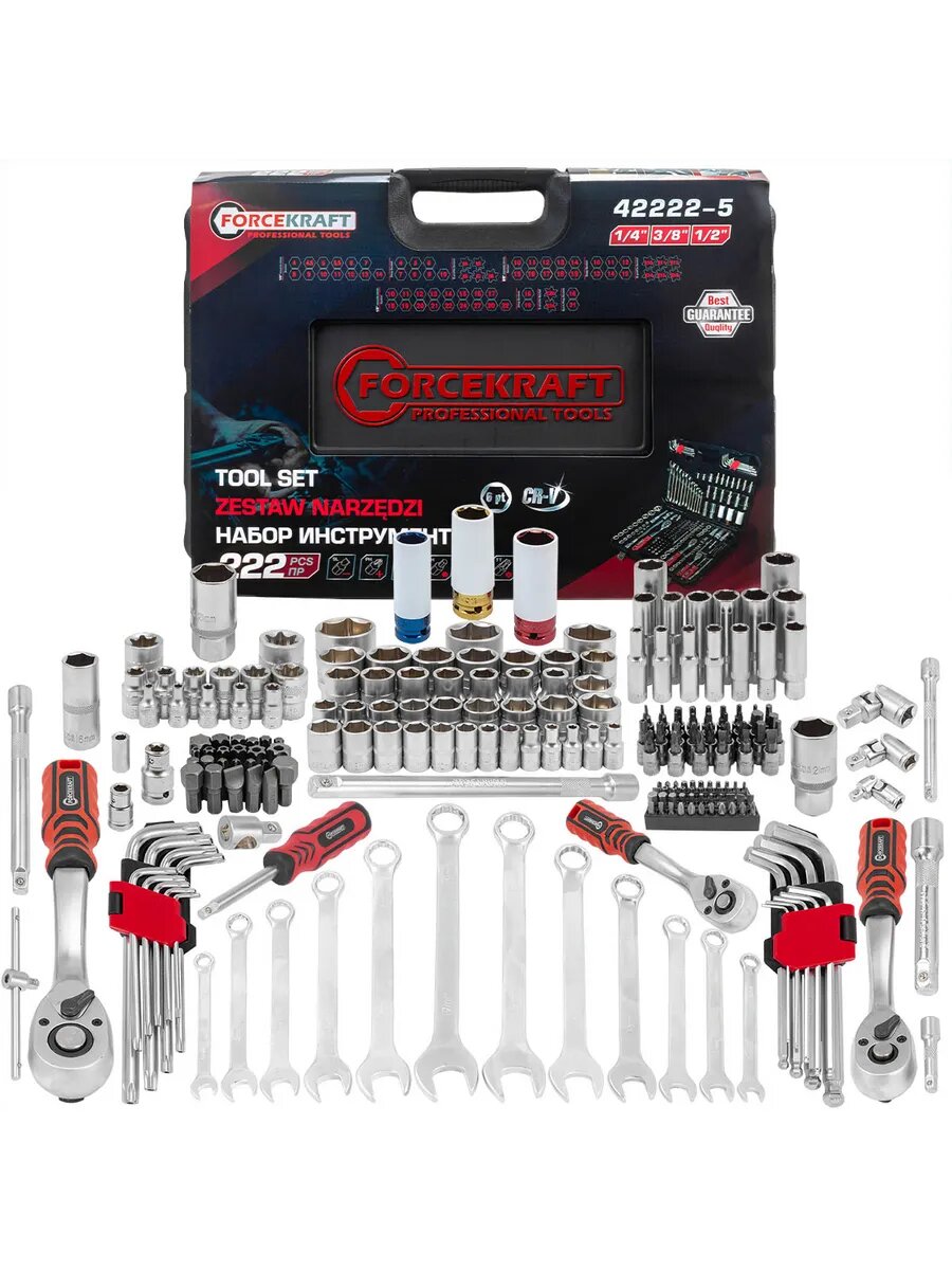 Набор инструментов Forcekraft 222 предмета 1/4 3/8 1/2 FK-42222-5(64513): сравнение цен, характеристики, фото, актуальное наличие и цены.