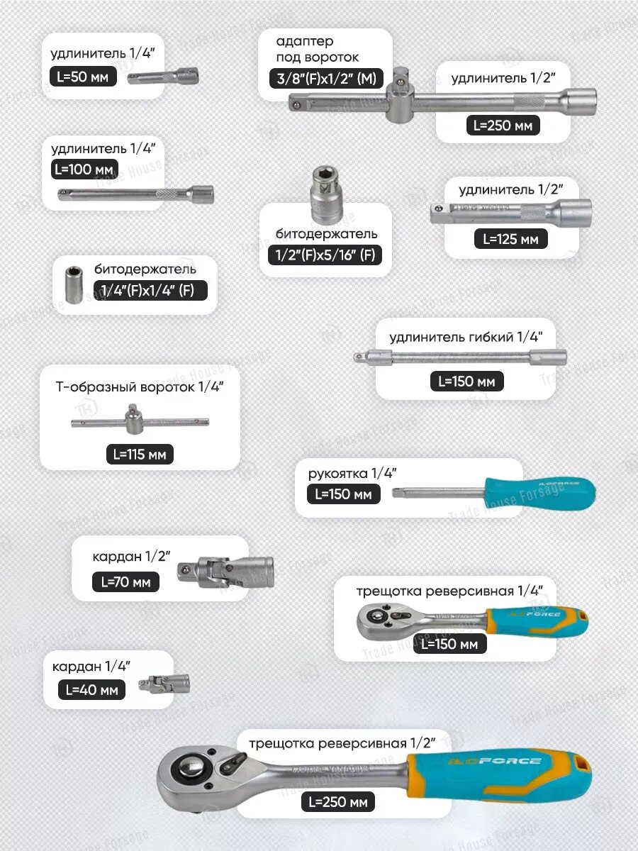 | Инструменты в комплекте | вороток для головок, молоток, отвёртки, плоскогубцы, трещотка |