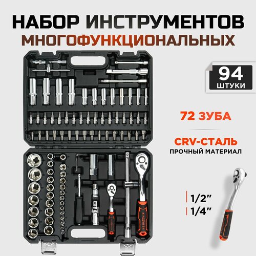 Купить Набор инструментов для дома и авто 94 предметов CrV сталь трещотки 72 зуба 1/2 и 1/4 с доставкой по всей России.