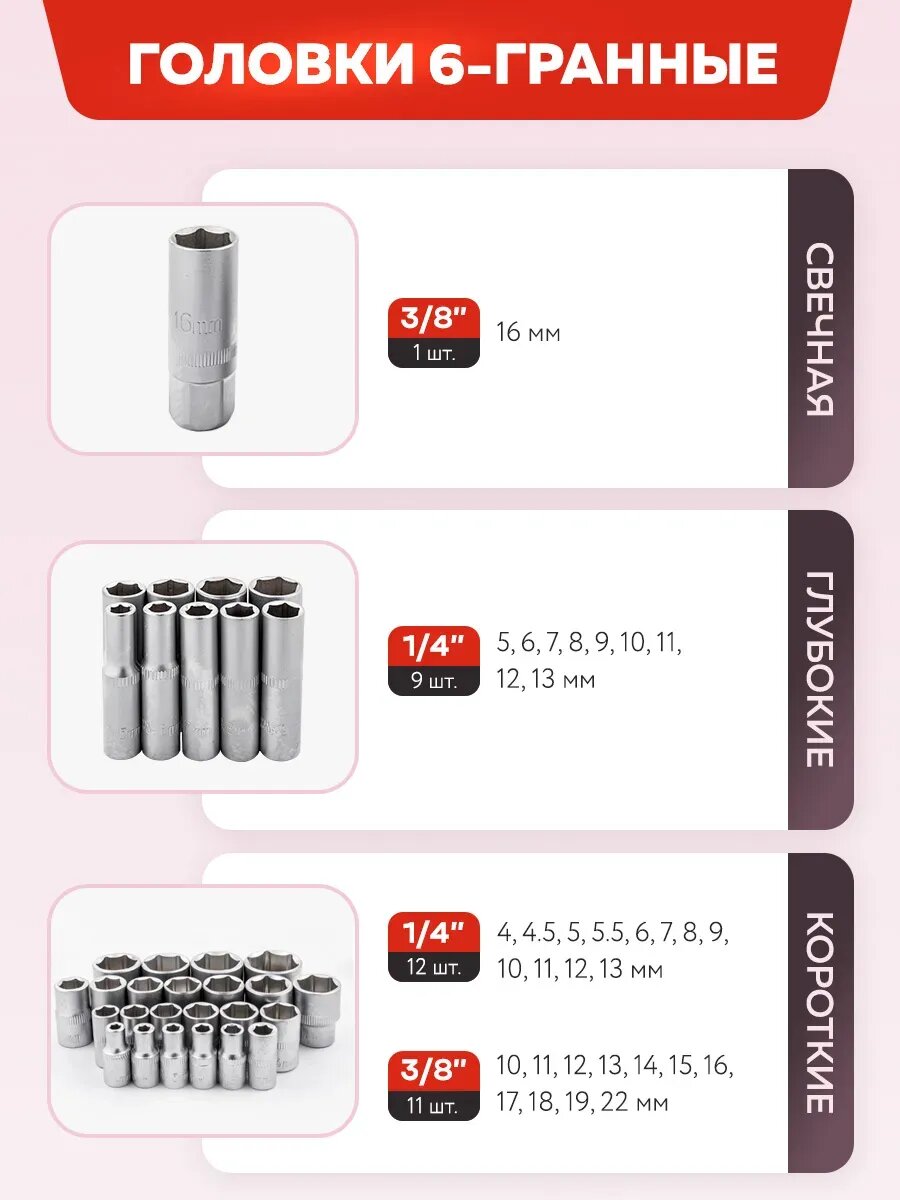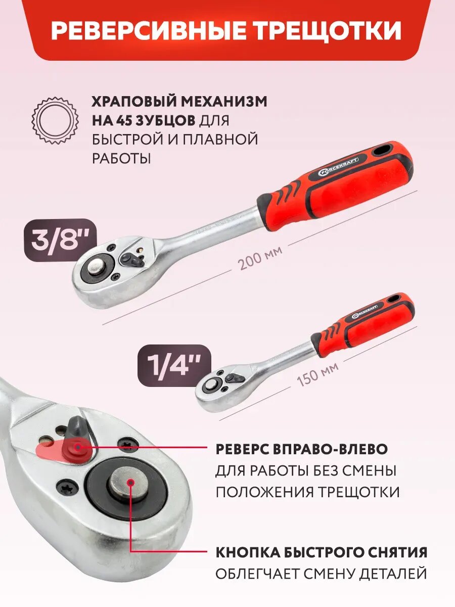 Набор инструментов 94 предмета 1/4", 3/8" (6гр.) FORCEKRAFT