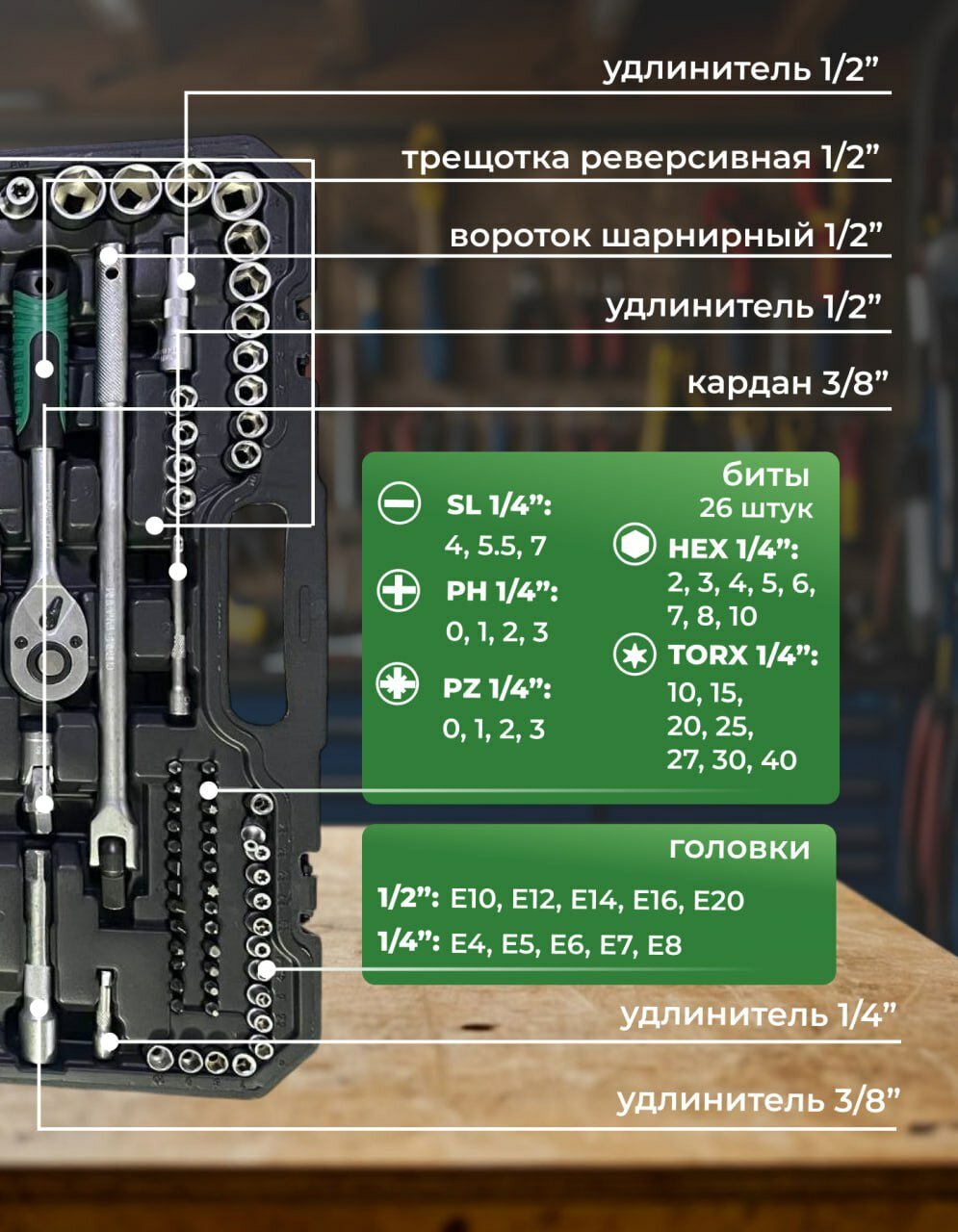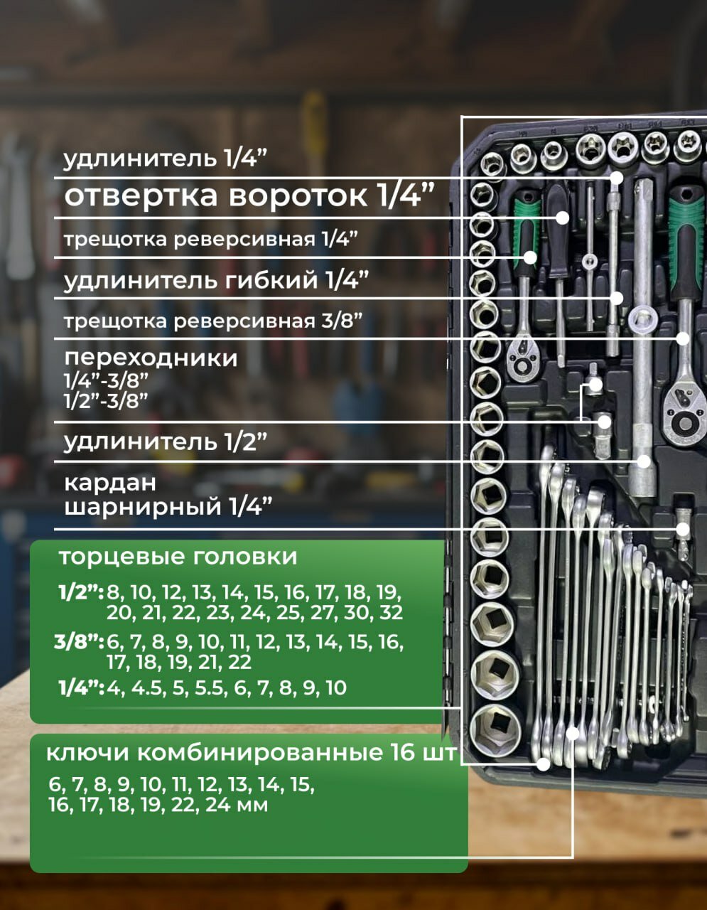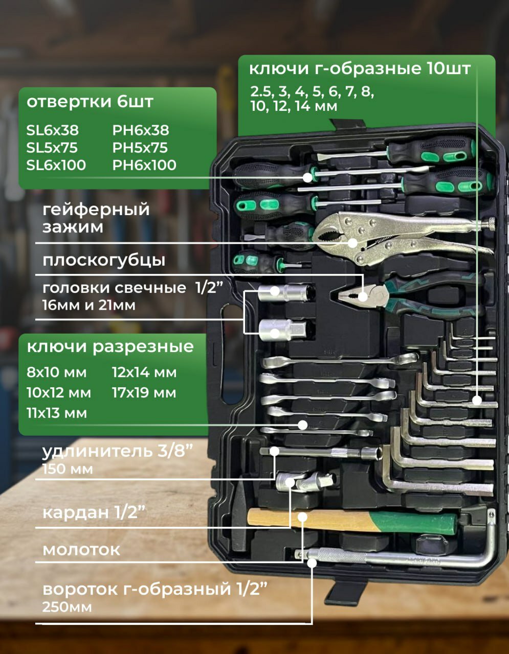 Представляем вам универсальный набор инструментов для автомобиля и дома, состоящий из 142 предмета! Этот комплект станет незаменимым помощником как для профессионалов, так и для любителей DIY. С его помощью вы сможете легко справляться с любыми задачами, будь то мелкий ремонт, обслуживание автомобиля или выполнение домашних работ.