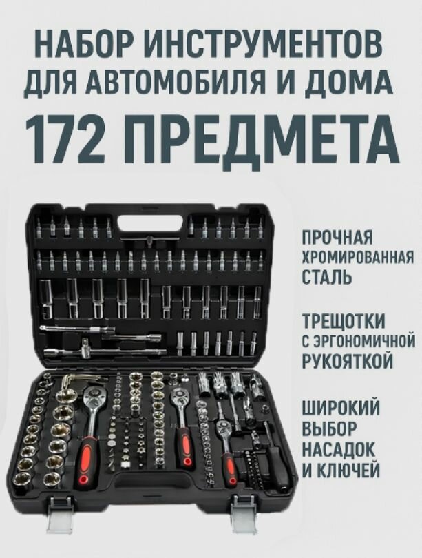 Представляем вам универсальный набор инструментов для автомобиля и дома, состоящий из 172 предмета! Этот комплект станет незаменимым помощником как для профессионалов, так и для любителей DIY. С его помощью вы сможете легко справляться с любыми задачами, будь то мелкий ремонт, обслуживание автомобиля или выполнение домашних работ.