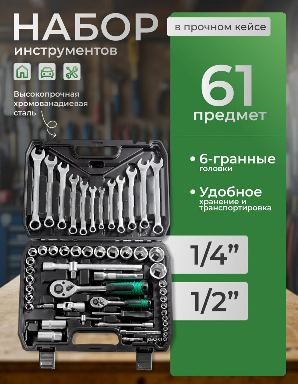 Представляем вам универсальный набор инструментов для автомобиля и дома, состоящий из 61 предмета! Этот комплект станет незаменимым помощником как для профессионалов, так и для любителей DIY. С его помощью вы сможете легко справляться с любыми задачами, будь то мелкий ремонт, обслуживание автомобиля или выполнение домашних работ.
